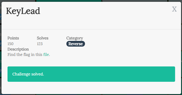 This challenge consisted of a file called keylead, which was a 64-bit Linux executable file (ELF):