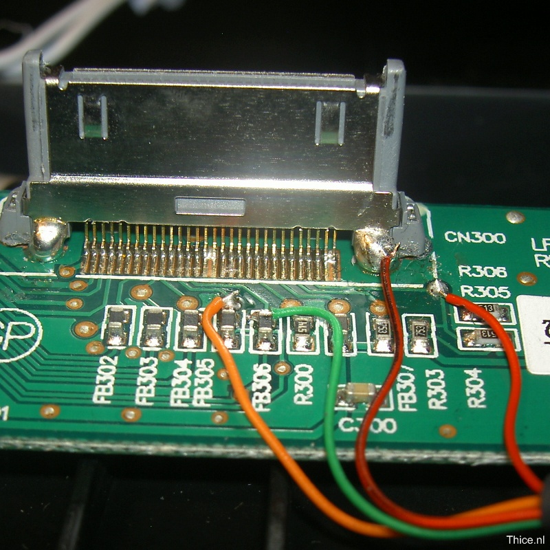 Since the 3.3V connection on pin 18 was really fragile I searched for an alternative location to solder the wire to. I found the previously named 5V location close to the dock connector.
