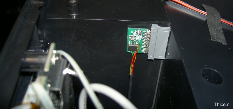 I attached wires to the four above named connection points on the authentication chip, I used four different colours of wire to be able to distinguish between the different chip pins.