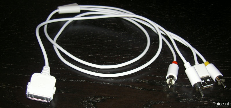 Like seen on the picture, the cable contains audio and video connectors as well as a USB plug. But what is more important is that it contains the authentication chip. This chip can be found when the casing of the iPod plug has been removed. The casing can be removed quite easily.