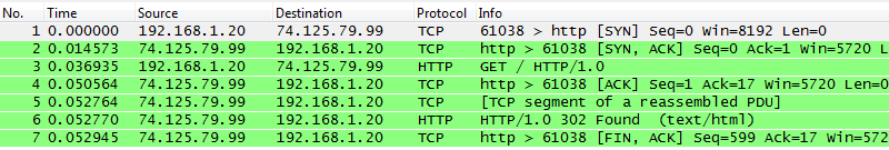 The best way to see what is happening in the background is to have Wireshark running at the same time. You might want to set a filter in Wireshark to only show the packets involved in our request. Since my script uses the Google website I use the following filter: