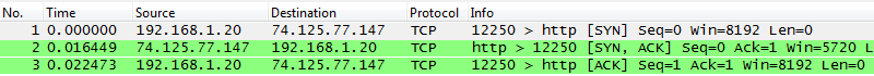 Normal TCP handshake in Wireshark