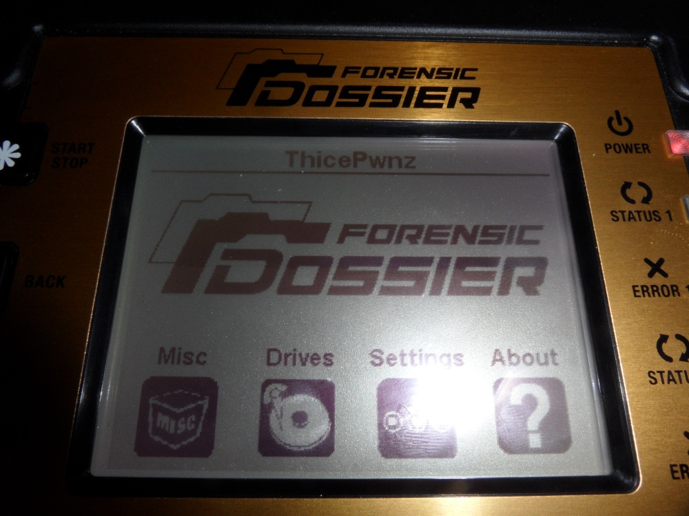 The Logicube Forensic Dossier does not seem to sign the firmware against tampering. This means that you can alter the firmware files to do what you want. I only did a quick test with this, which can be seen below where I adjusted the firmware to show my name on the top of the screen. With some more analysis it is probably possible to change stuff like the hash calculation of the device resulting in tampering with the evidence.