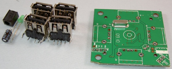 The hardware that will be put together can be seen on the picture on the right. A USB hub, a USB mouse and a USB stick will be combined and only the USB mouse will be left in the end.