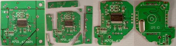The four pictures below show the modification of the USB hub PCB. The first two pictures show the parts of the PCB that got cut off to make it smaller. The last two pictures show the resulting PCB from two sides.