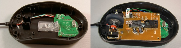 The specific USB mouse used in this example contains an internal color changing LED which besides giving the mouse a nice glow also makes the hiding a bit harder. When the LED is blocked by the added hardware it might give an indication that something is wrong with the mouse. This makes it more challenging to perform the trick with this mouse, the trick would be much easier with a more plain mouse.