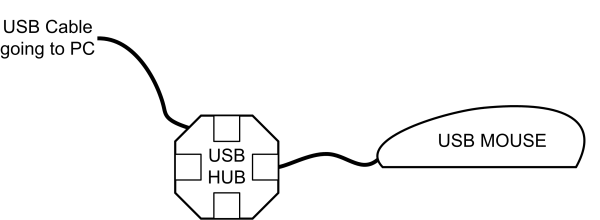The theory behind the hiding of the data is pretty simple. A normal USB device will have a USB cable which can be connected to a USB port on the computer. This simple fact is shown in the schematic below using a USB mouse.