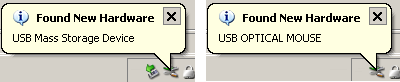 After everything is done correctly and the mouse has been put together the mouse can be connected to a computer again. When connected the computer will find both the hardware devices, like shown in the images below.