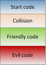 This code can be used to add your own code to it by replacing the Placeholders. The code contains placeholders for the collisions we will add to the executable in the next part. Before the collisions will be added the code needs to be compiled first. It is important to have no optimization or anything when compiling, since that might screw up the placeholders. During my research I used Dev C++ to compile the code.