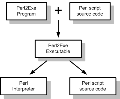Perl2Exe converts the source code of the Perl script by packing it inside a single executable together with a Perl interpreter. The Perl source code is included inside the executable in encrypted form and thus it cannot easily be recovered from the executable.