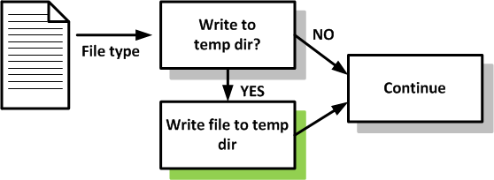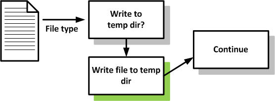 In the schematics above the Perl script source code would originally not be written to the temporary directory, but after changing the flow of the program it will be.
