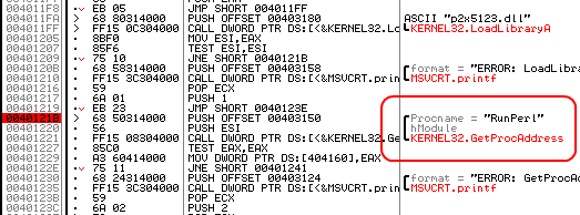 After unpacking the DLL file it can be easier analysed with tools such as IDA (http://www.hex-rays.com/products/ida/index.shtml). However that is not the approach we will follow in this article because these DLL files only contain the Perl interpreter and in this case we are interested in the Perl source code.