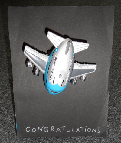 The little airplane makes a taking off noise when you press the small button, which it kept doing in my suitcase. I can tell you that not everyone on the flight and the train could appreciate me winning the price. 😉