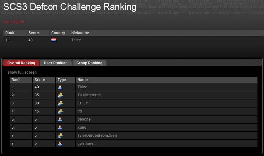 Swiss Cyber Storm Defcon ranking day 1